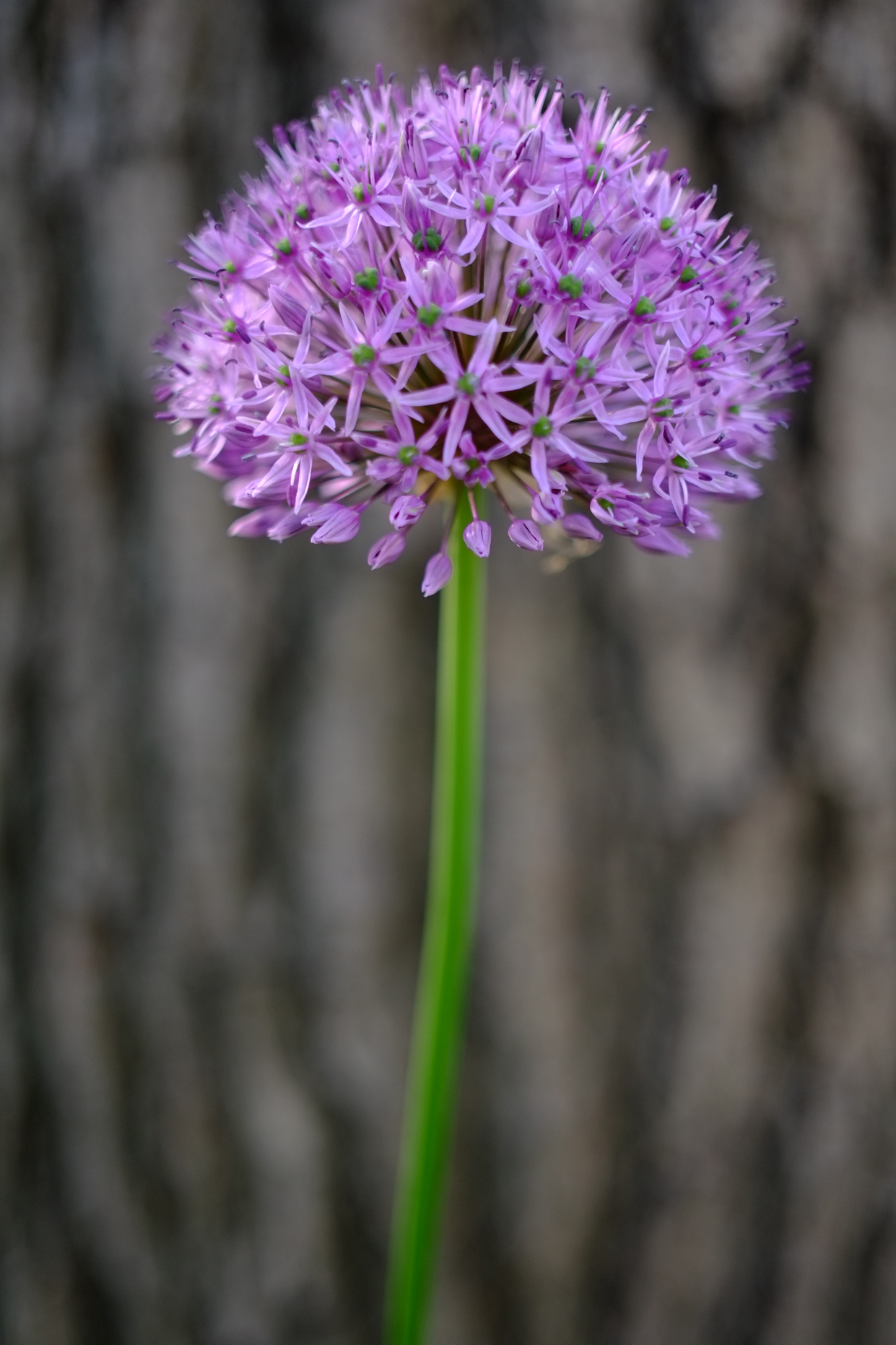 Macro is superb with-out really being a macro lens. The 32 mm can focus down to 1.21 feet. Please consider the background of a macro shot, I think it is easy to get all caught up in the subject and then make a mistake in the background. I saw this purple flower in front of the pattern like bark of the tree and really concentrated on filling the background with the texture of the bark and being careful to not get anything but the tree in the background. The flower was easy, but man, look at that soft out of focus mottling of the bark. Yum.