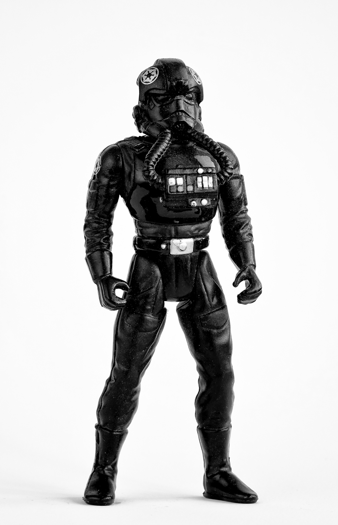 The images found on this post were shot in the portrait style I used for the Seattle Suspects. The figures are from my personal collection; each one was played with in back yards, friend’s rooms and construction sites. I photographed them with a Sony RX10 using one reflector and widow light. A sheet of 13×19 white satin paper was used as the back drop. I then ran the images through Nik Silver EFX to get them to look like my old Tech Pan process looked like. Contrasty and filled with detail.