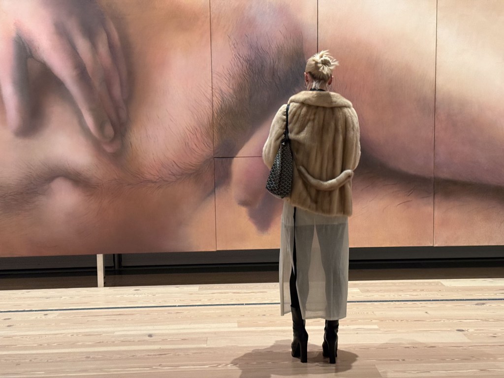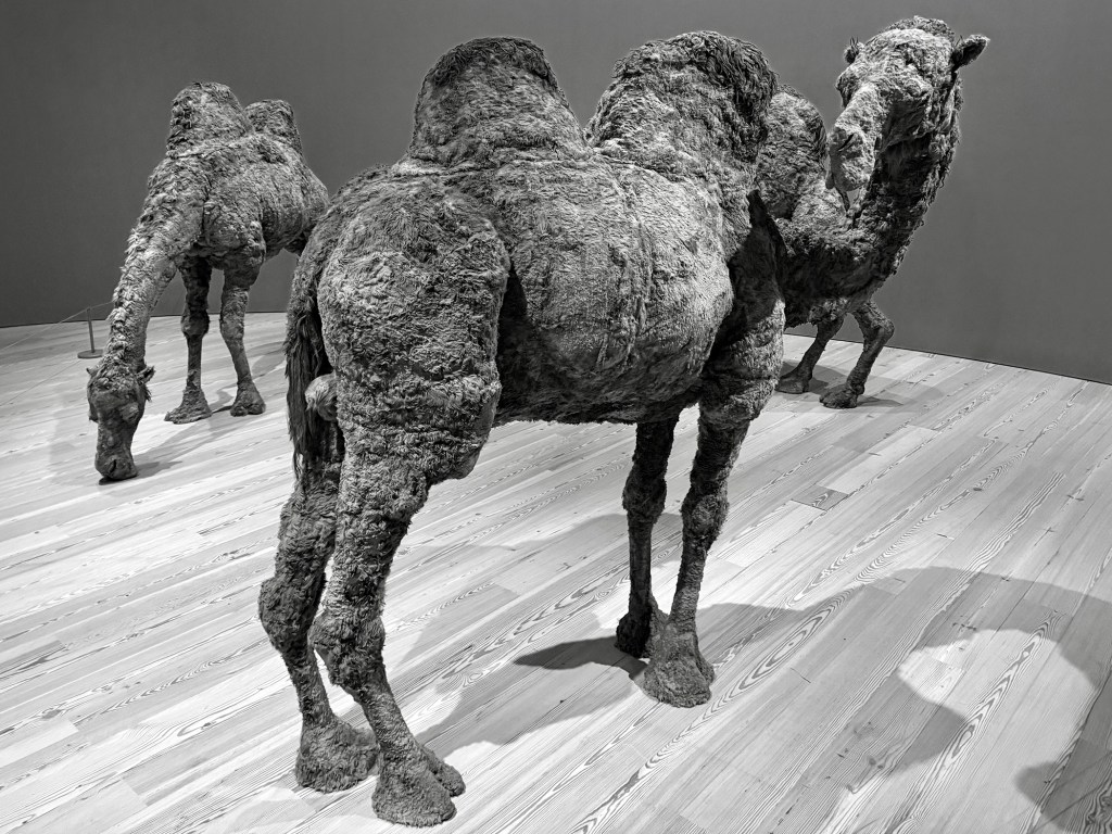 As we walked through the galleries, past surreal camels, we came upon this scene and I pulled out the iPhone and ran to frame and make this photo. The subject was standing still, admiring the piece and my usual luck is “get in position, subject moves out of position”. But not this time. I was able to make a few photos fast zeroing on composition.