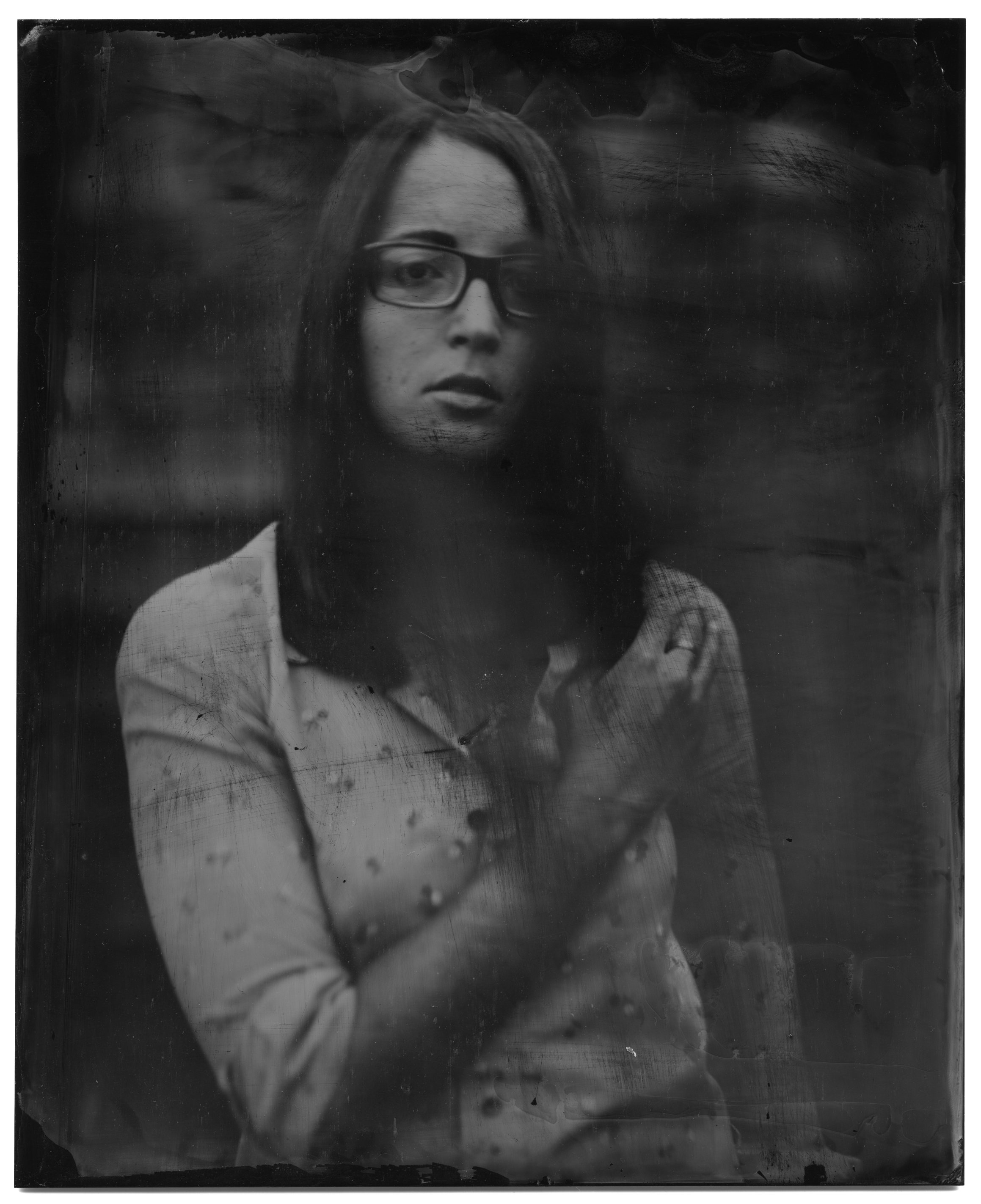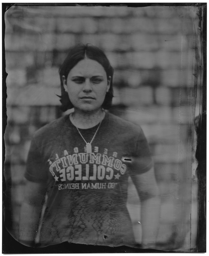 Portrait of Kendra 8×10 Tintype Kodak 14″ Comercial Ektar Lens, 10 Seconds F8 Note: Kendra is covered in beautiful tattoos, however since Collodion is sensitive to UV light, tattoos don’t show up in the image.